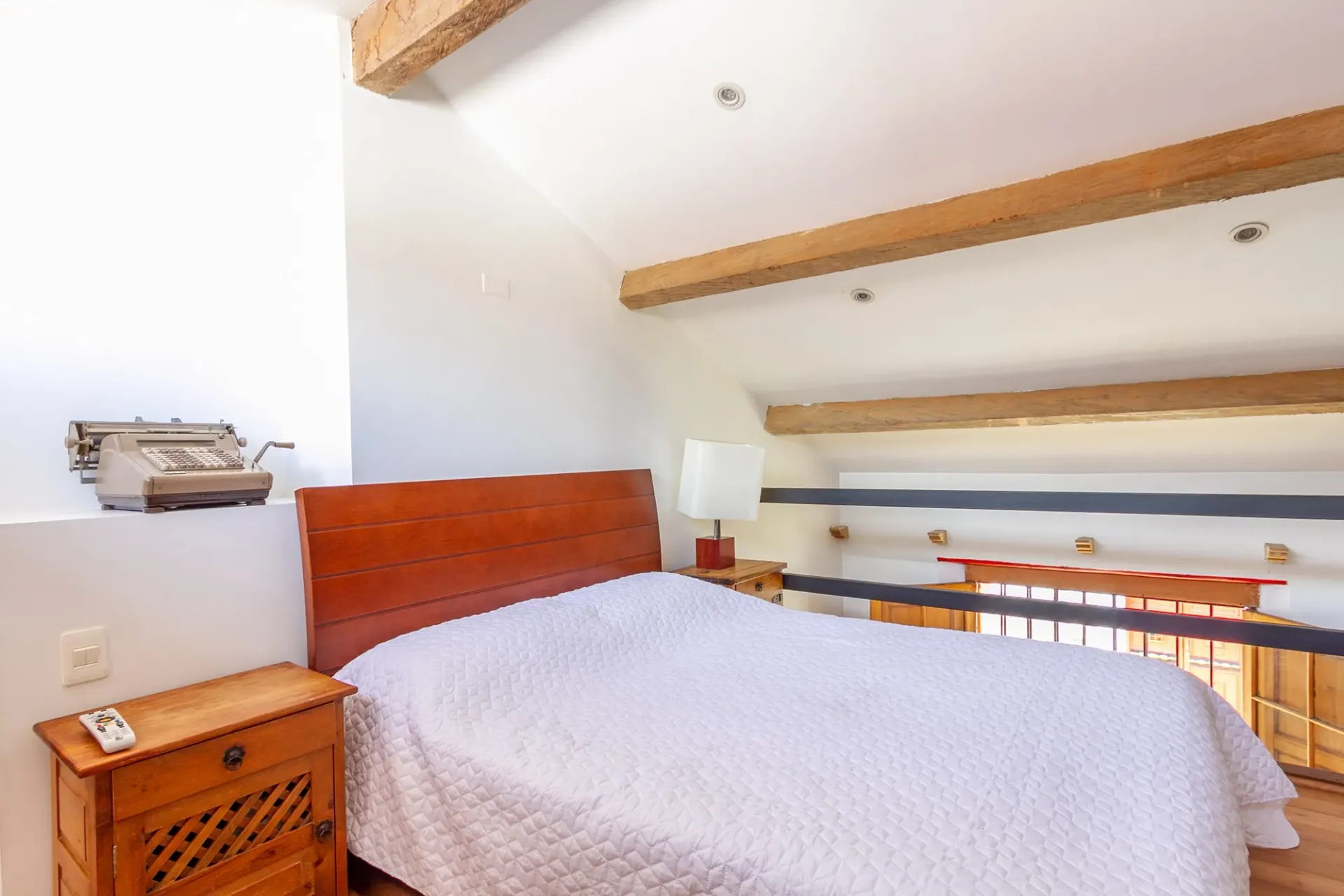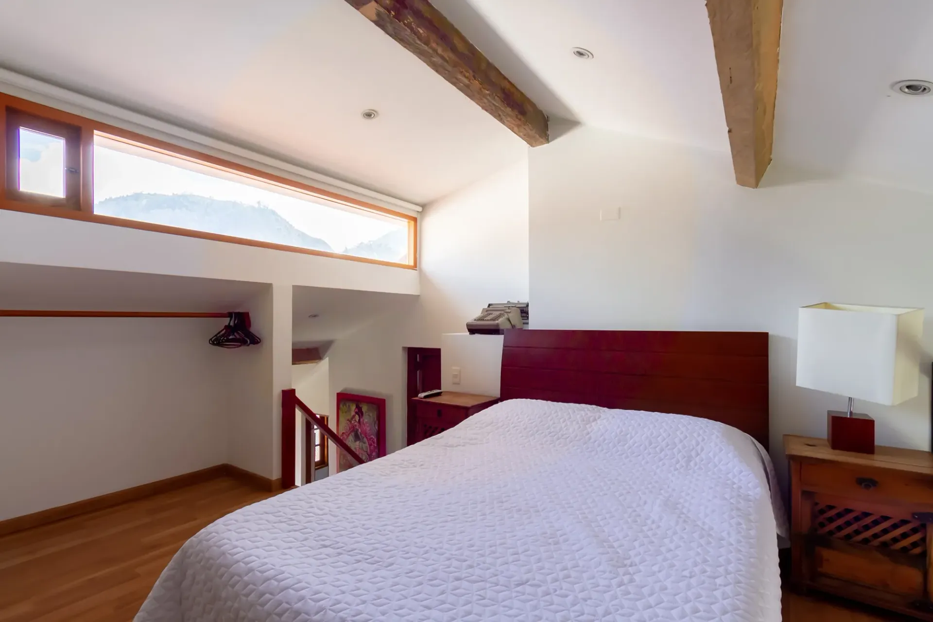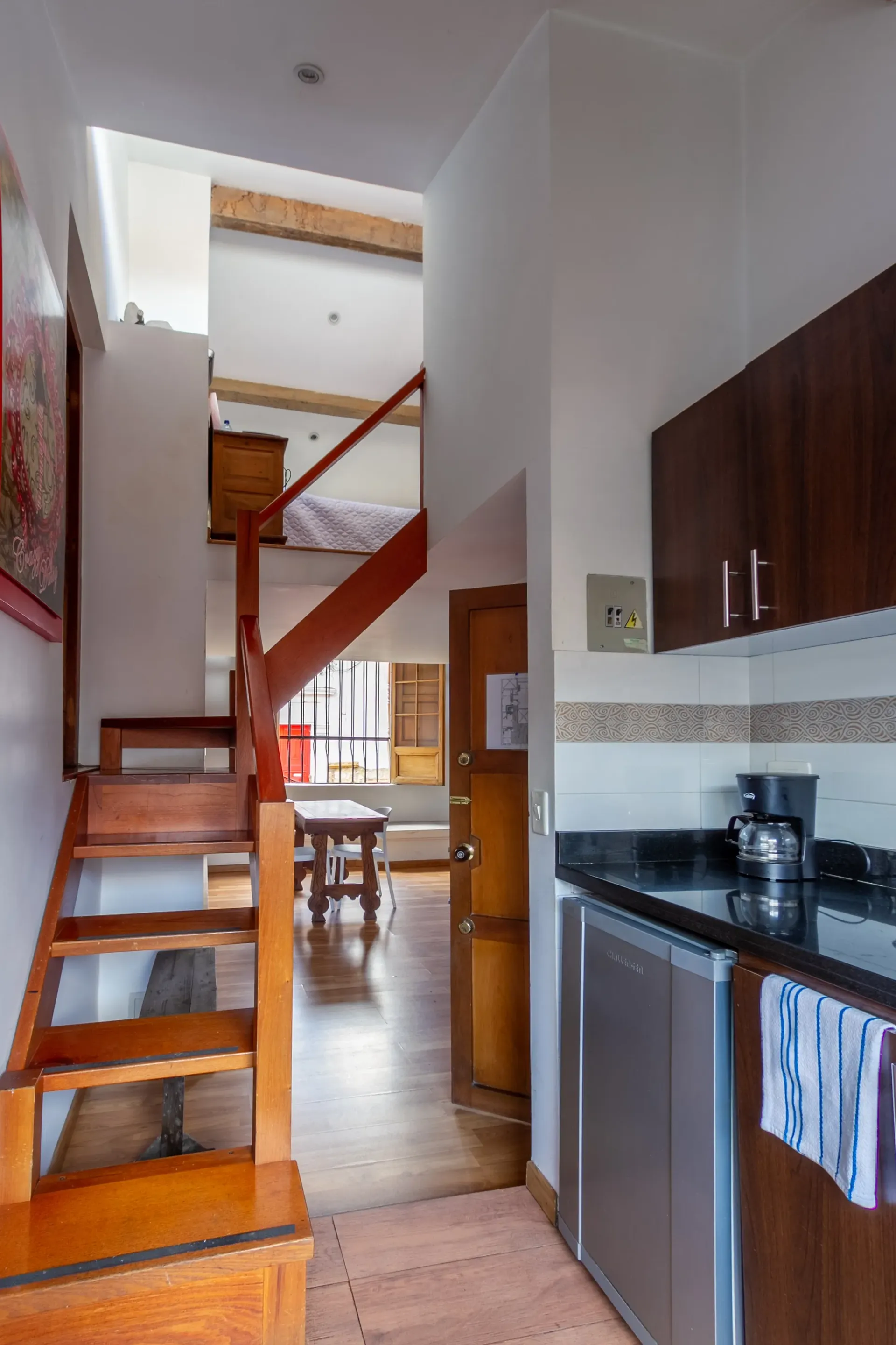 Apartaestudio amoblado de dos plantas, a partir de 45 metros cuadrados, 2 alcobas, 2 baños uno con tina, sala-comedor, escritorio y cocina con menaje incluido y chimenea a gas.